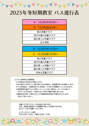 ※バスの時刻表につきましては、12月17日(水)15時以降にこちらのページで発表致します。